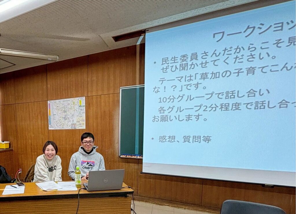 講師として草加安行地区にある「花栗子育てひろば」の代表眞原静様、敦様のお二人をお迎えしました。